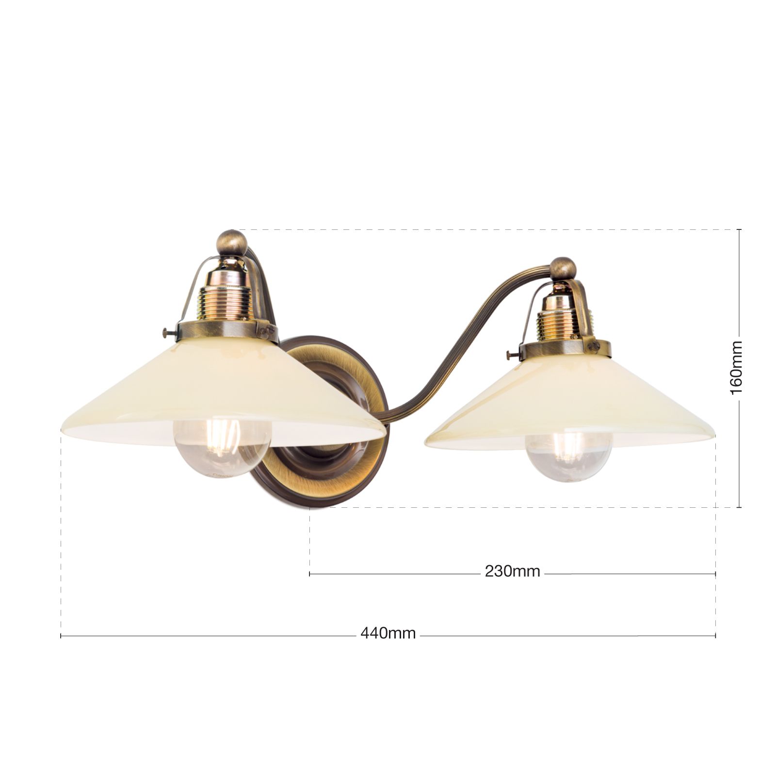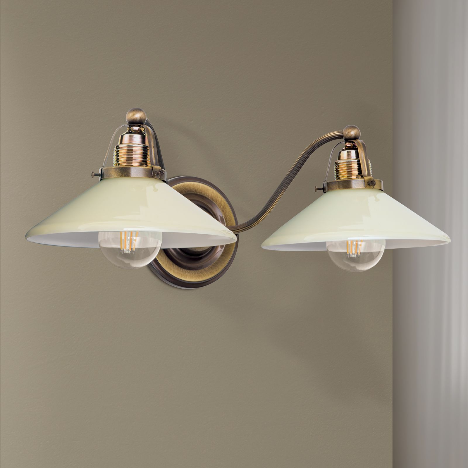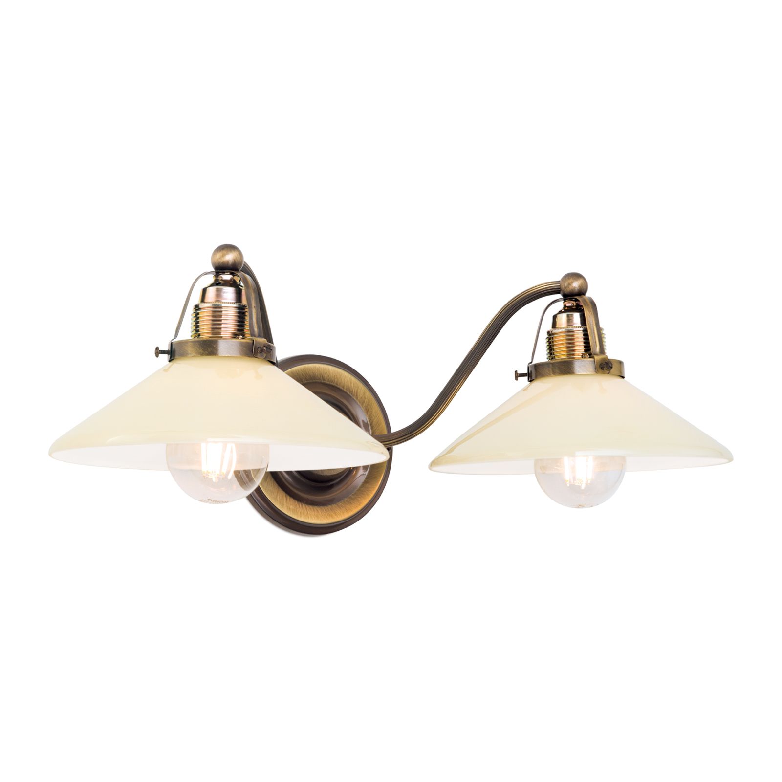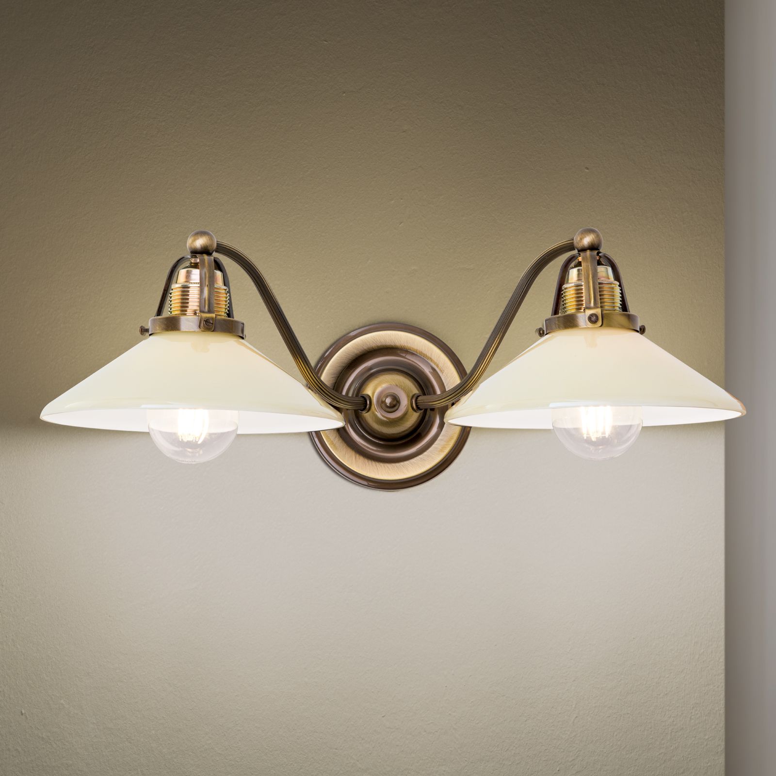 Wandleuchte ARTDESIGN, 2-flammig, Patina, mit champagner-färbigem Glas