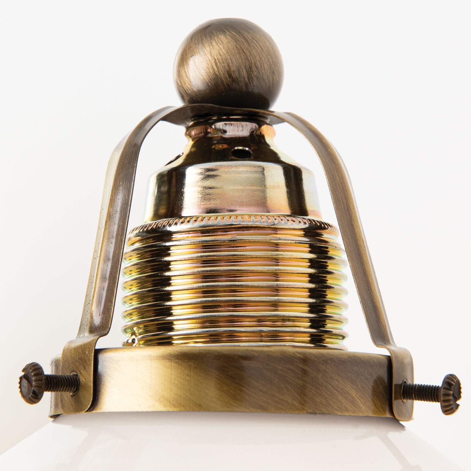 Das Highlight dieser Leuchte sind zweifellos die champagnerfarbenen Gläser, die ein warmes und sanftes Licht erzeugen. Die Farbgebung schafft eine angenehme, entspannende Atmosphäre und sorgt für ein behagliches Ambiente in Ihrem Raum. Die champagnerfarbenen Gläser harmonieren perfekt mit der edlen Patina-Oberfläche der Leuchte, die eine antike Anmutung vermittelt und Ihr Interieur um eine Prise Vintage-Flair bereichert.