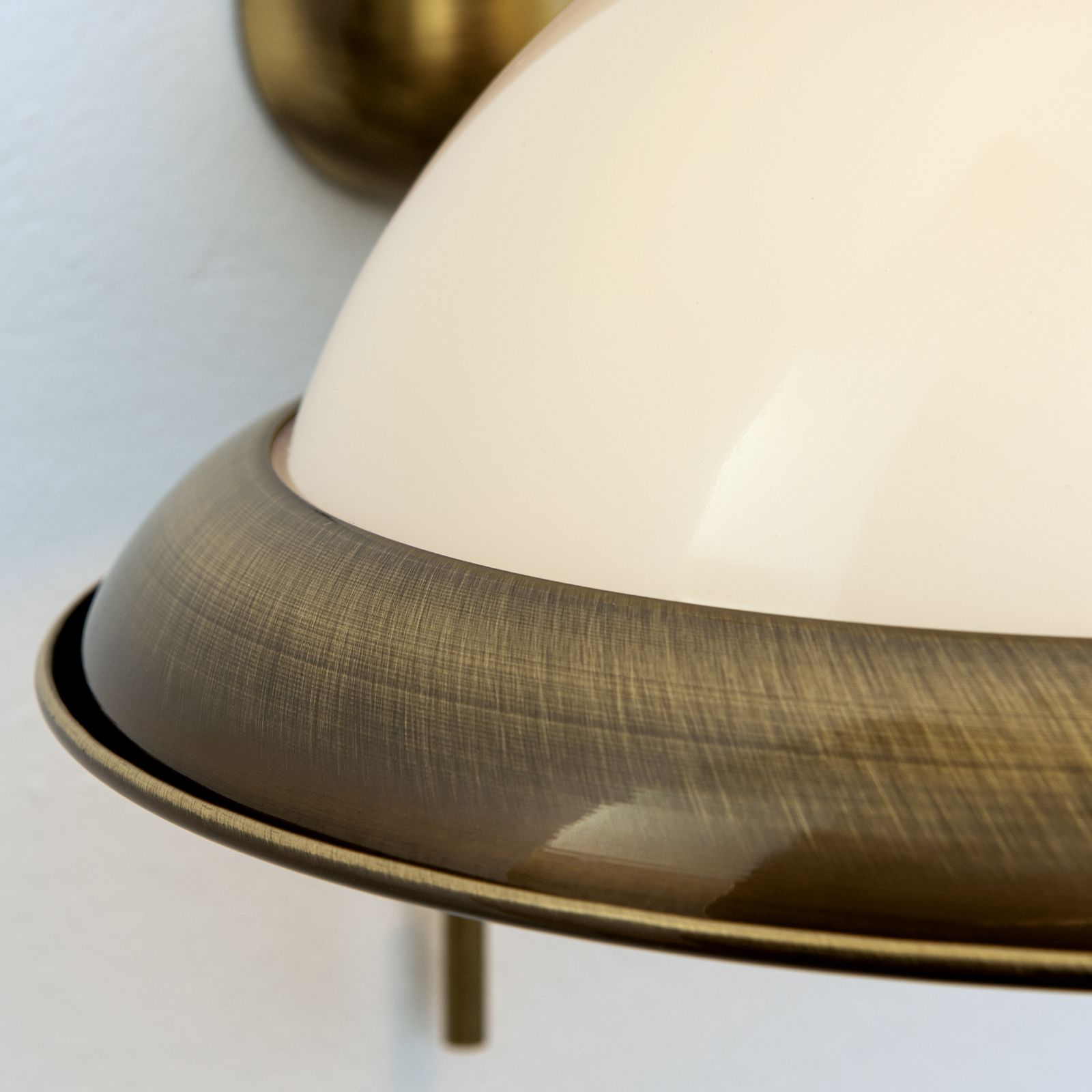 Diese einzigartige Wandleuchte ist mit einem hinreißenden Champagne glänzenden Glasschirm ausgestattet, der das Licht sanft diffundiert und eine warme, gemütliche Atmosphäre schafft. Der Schirm ist von höchster Qualität und verleiht Ihrer Einrichtung einen Hauch von Luxus und Eleganz.