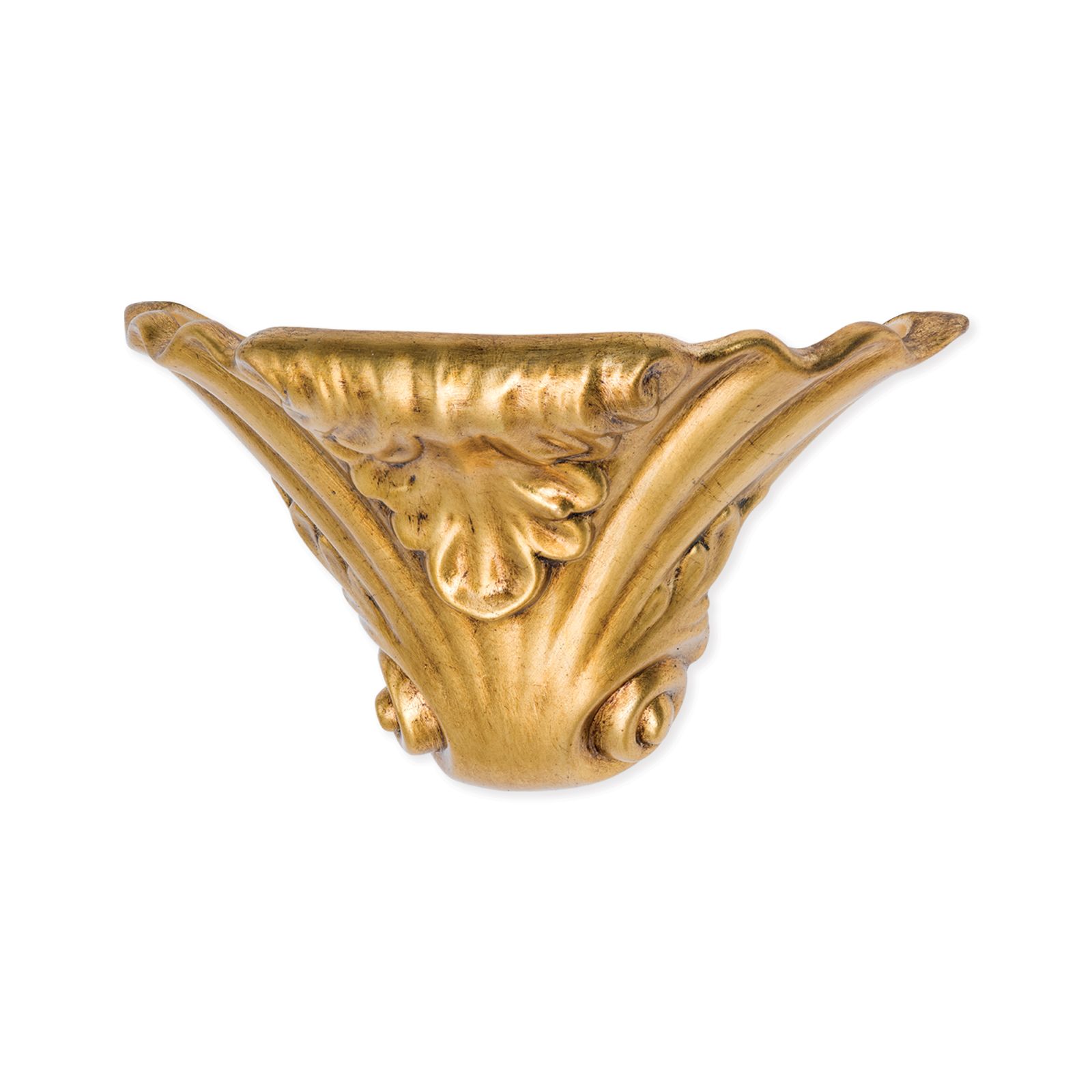 Die dekorative Wandleuchte BEATO erinnert in ihrer fächerartigen Form und reichen Ornamentik aus Voluten und Blattelementen an barocke Wandkonsolen.