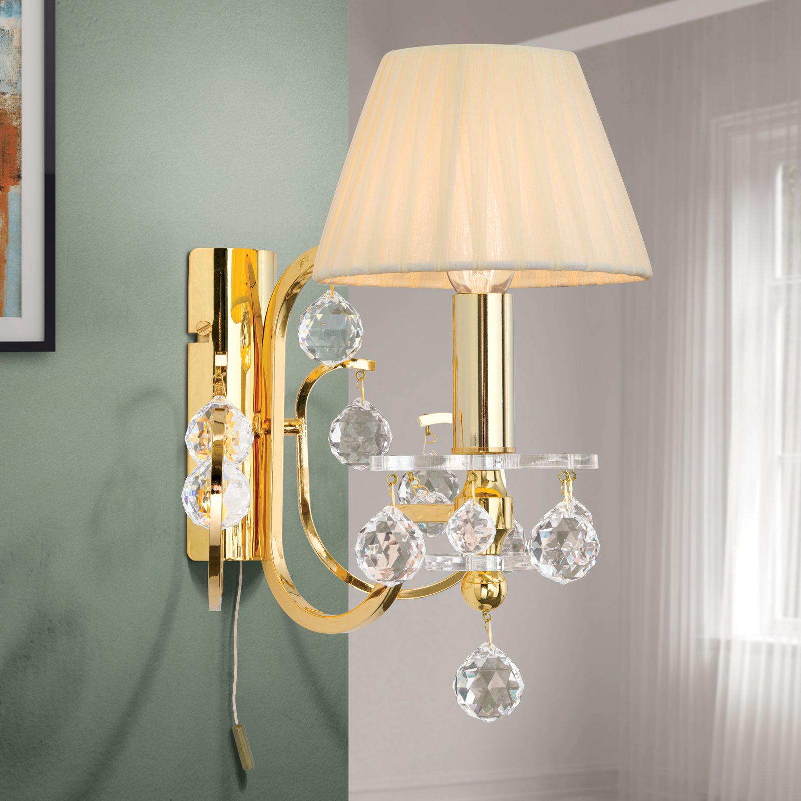 Wandleuchte KRISTALLDESIGN, 1-flammig, gold mit champagner-färbigem Schirm