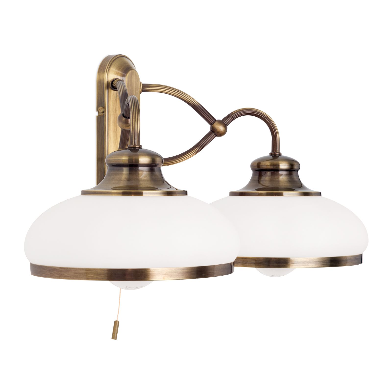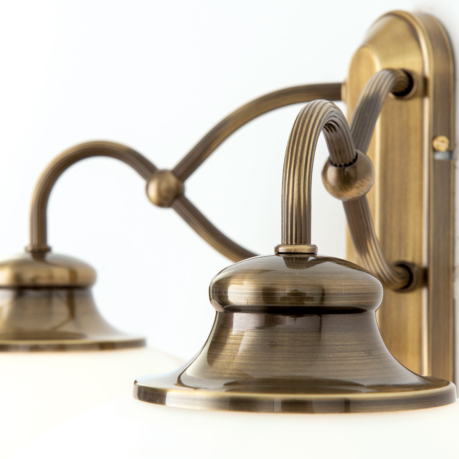 Wandleuchte LANDHAUS, 2-flammig, Patina, mit Opalgläsern