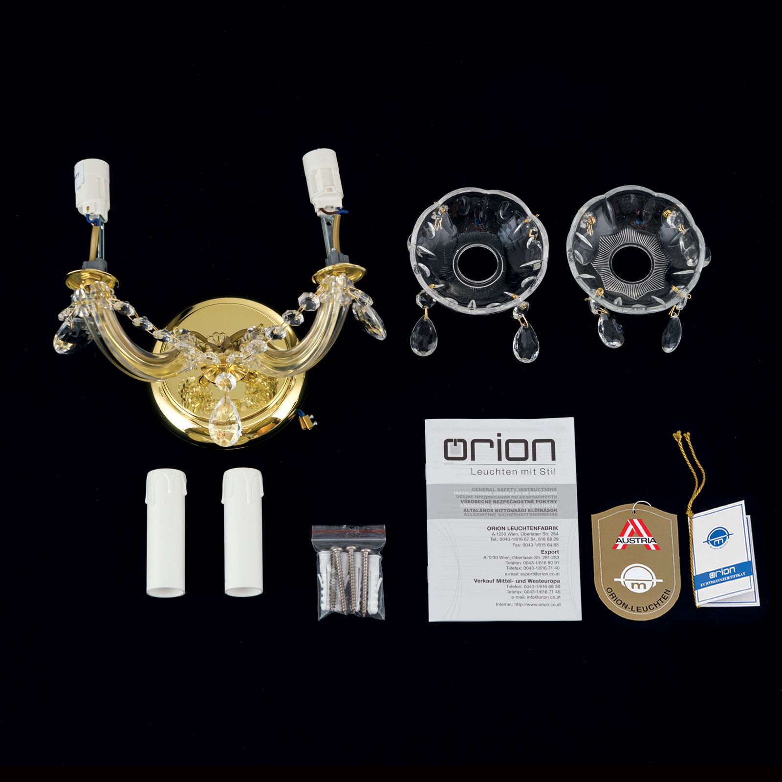 | Qualität Kristallbehang: | Halbschliff / Pressglas |