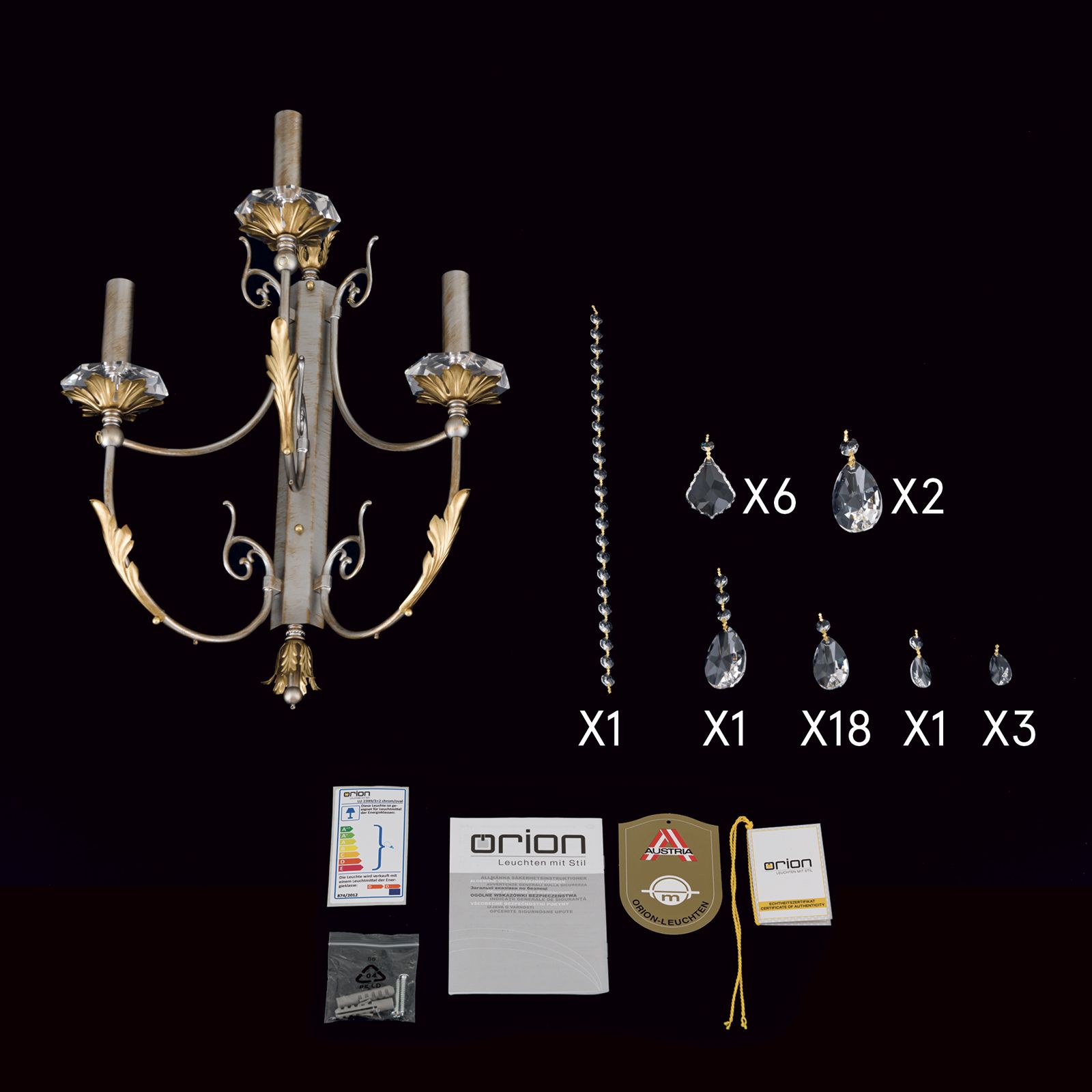 Wandleuchte MIRAMARE, 3-flammig, silbergold