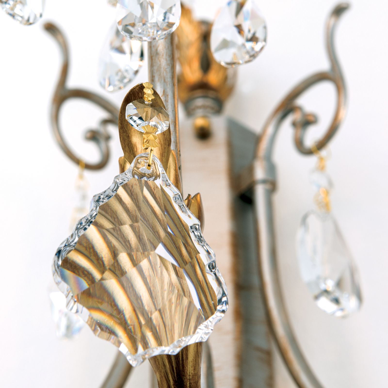Die MIRAMARE Serie präsentiert eine romantische Kombination aus barocker Opulenz und mediterraner Lebensfreude in Form einer 3-flammigen Wandleuchte. Sie erfüllt das Bedürfnis nach Ästhetik durch ihre kunstvollen Verzierungen und das edle Blattwerk-Design. Die hochwertigen, mehrfach geschliffenen Pendeloquen brechen das Licht in sämtliche Farben des Regenbogens und schaffen eine faszinierende Lichtstimmung im Raum. Die Windstoßkerzen sorgen für eine erfrischende Atmosphäre in jedem Wohn- oder Esszimmer. Im Eingangsbereich begrüßt die Wandleuchte Besucher mit ihrer anmutigen Erscheinung und gemütlichen Beleuchtung, wenn sie neben einem exquisiten Möbelstück platziert wird. Diese Leuchte ist mit zwei E14-Fassungen ausgestattet.
