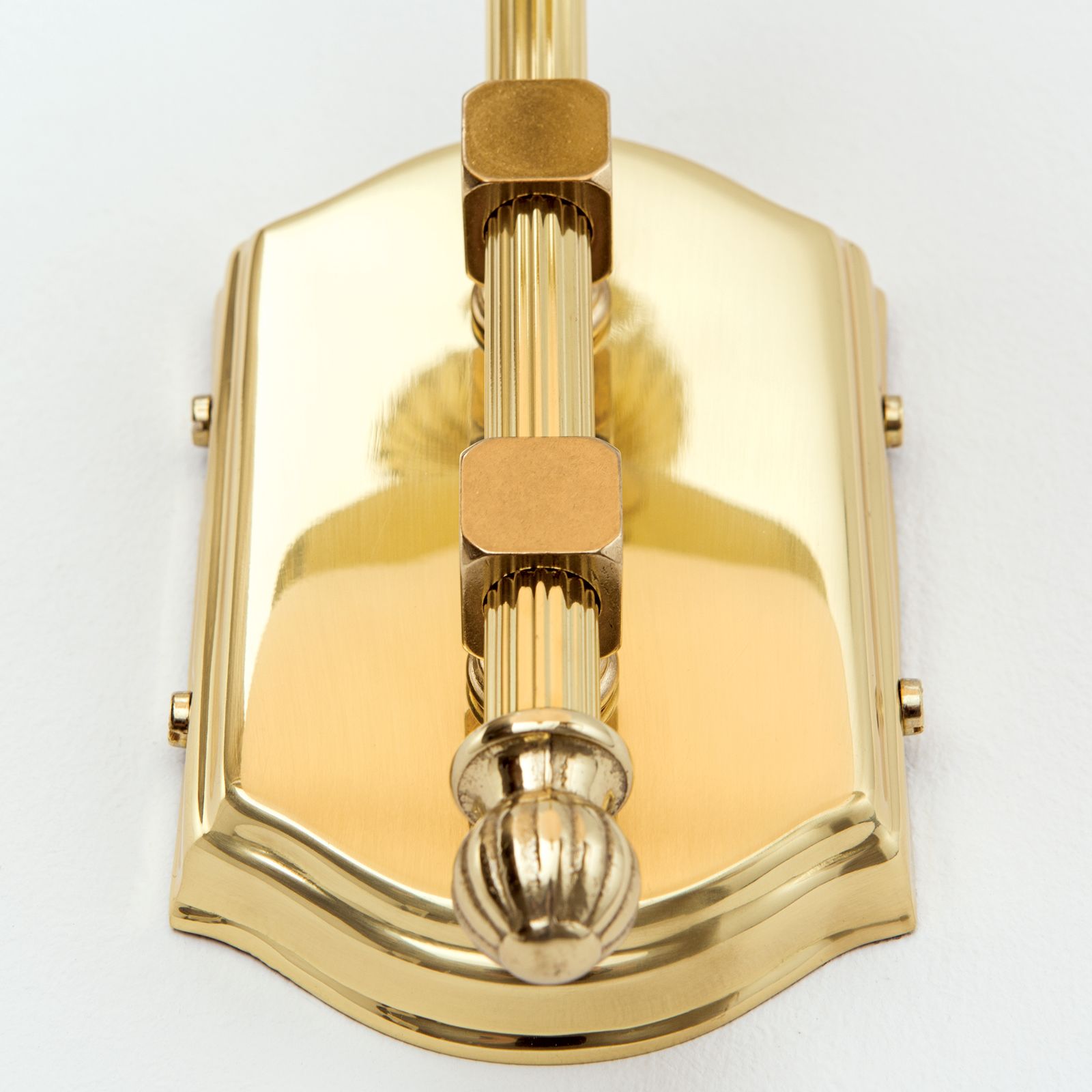 Diese Wandleuchte ist weiters mit champagne mattem Schirm und einer patinierten Oberfläche erhältlich.