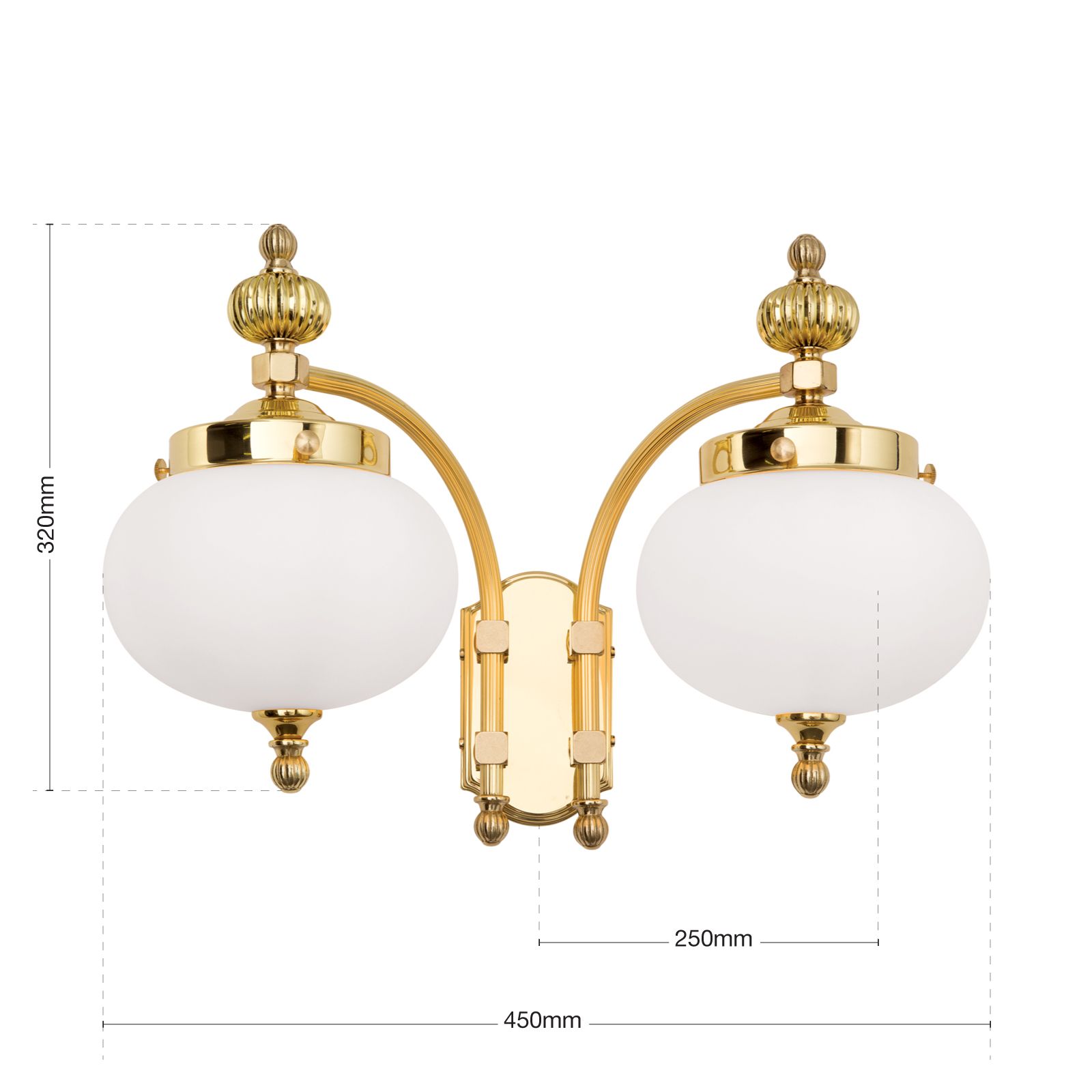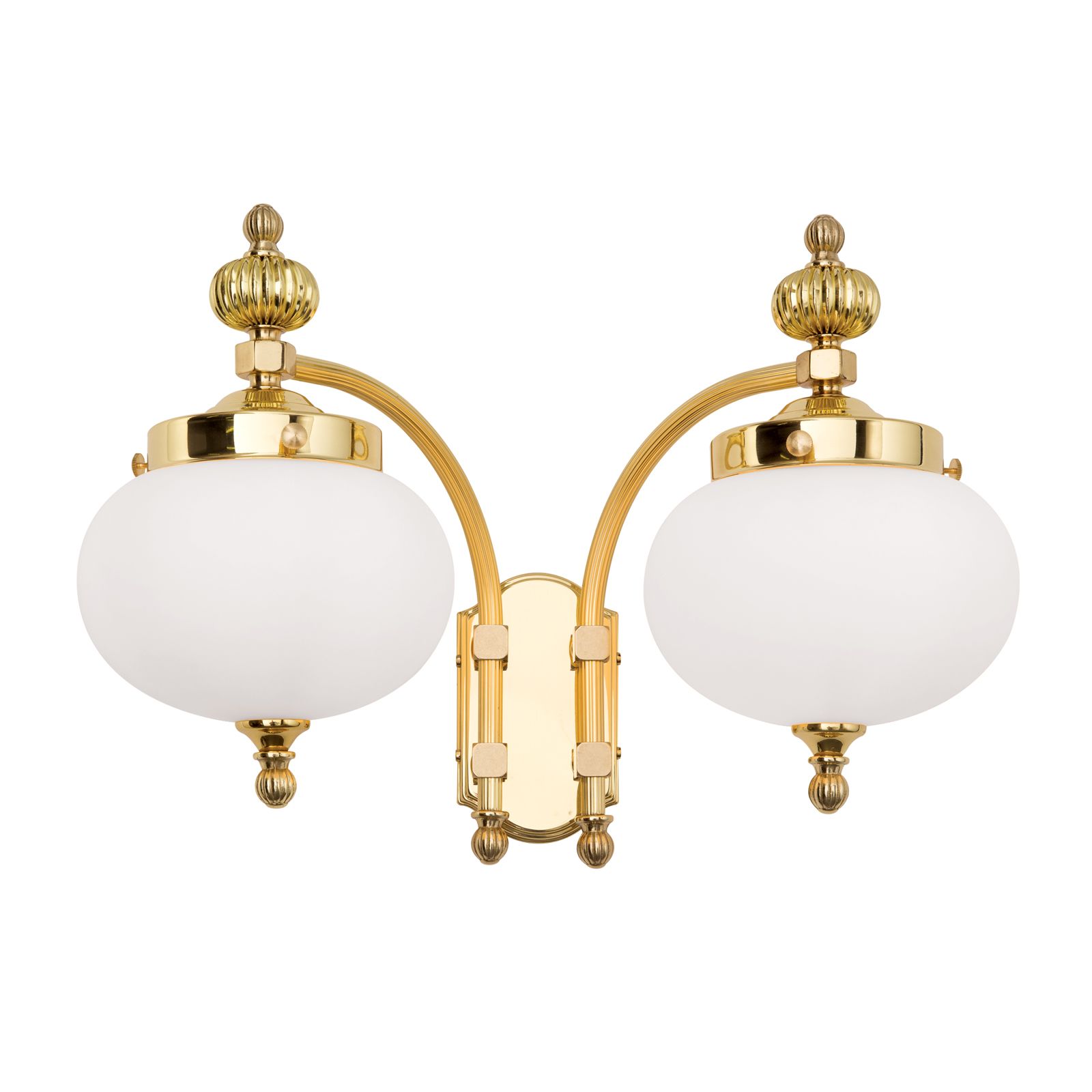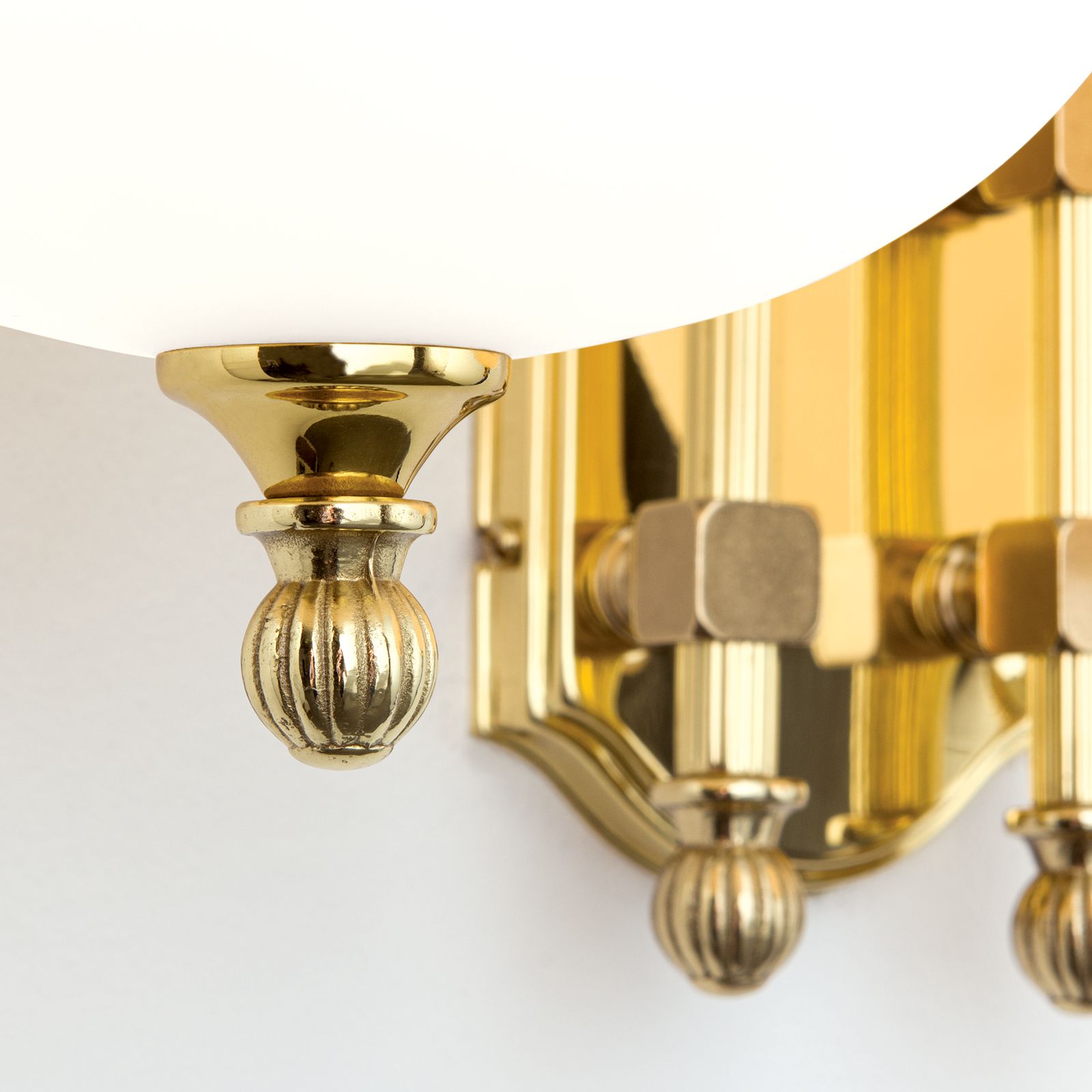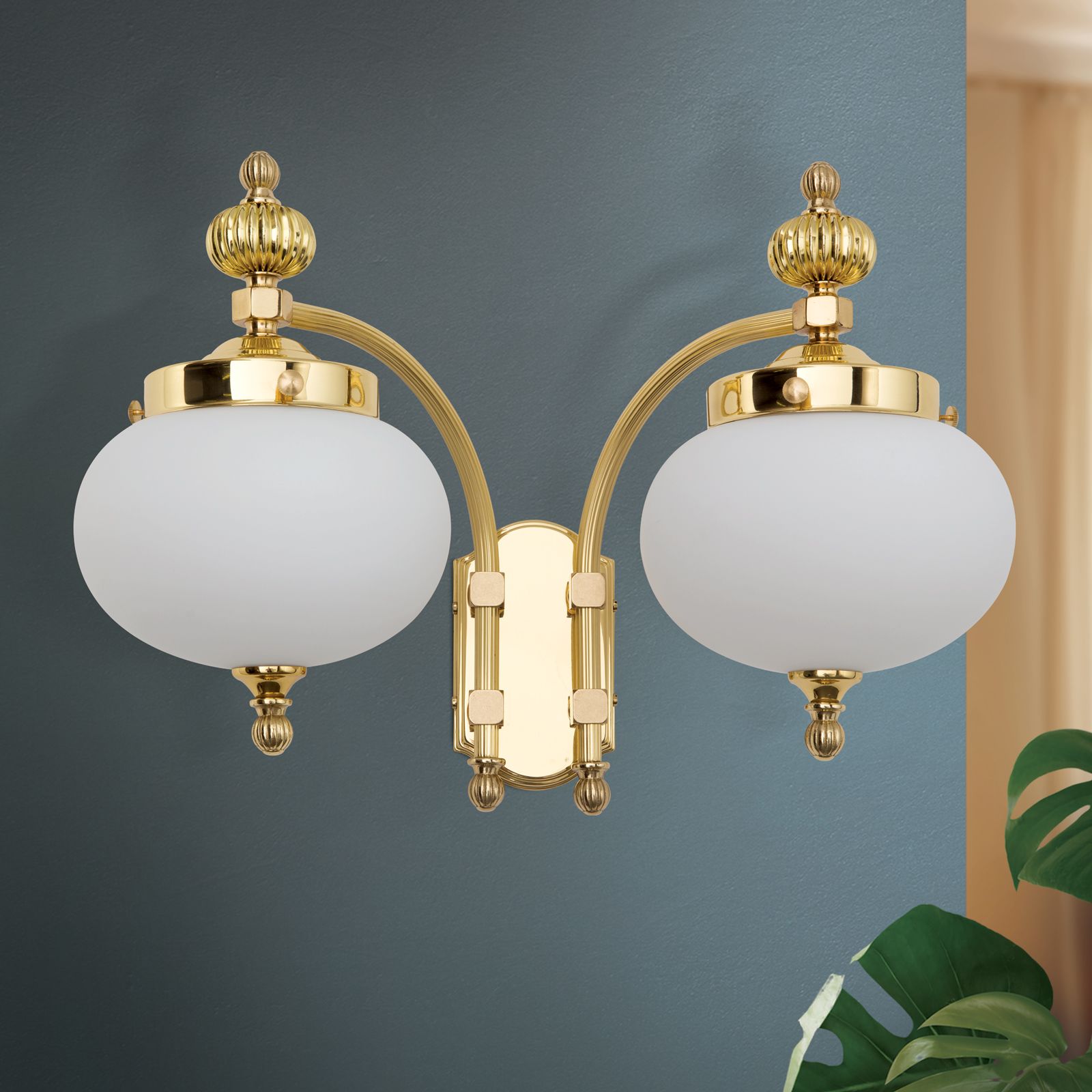 Wandleuchte WIENER NOSTALGIE, 2-flammig, Messing-glänzend, mit opal mattem Glas, abwärts